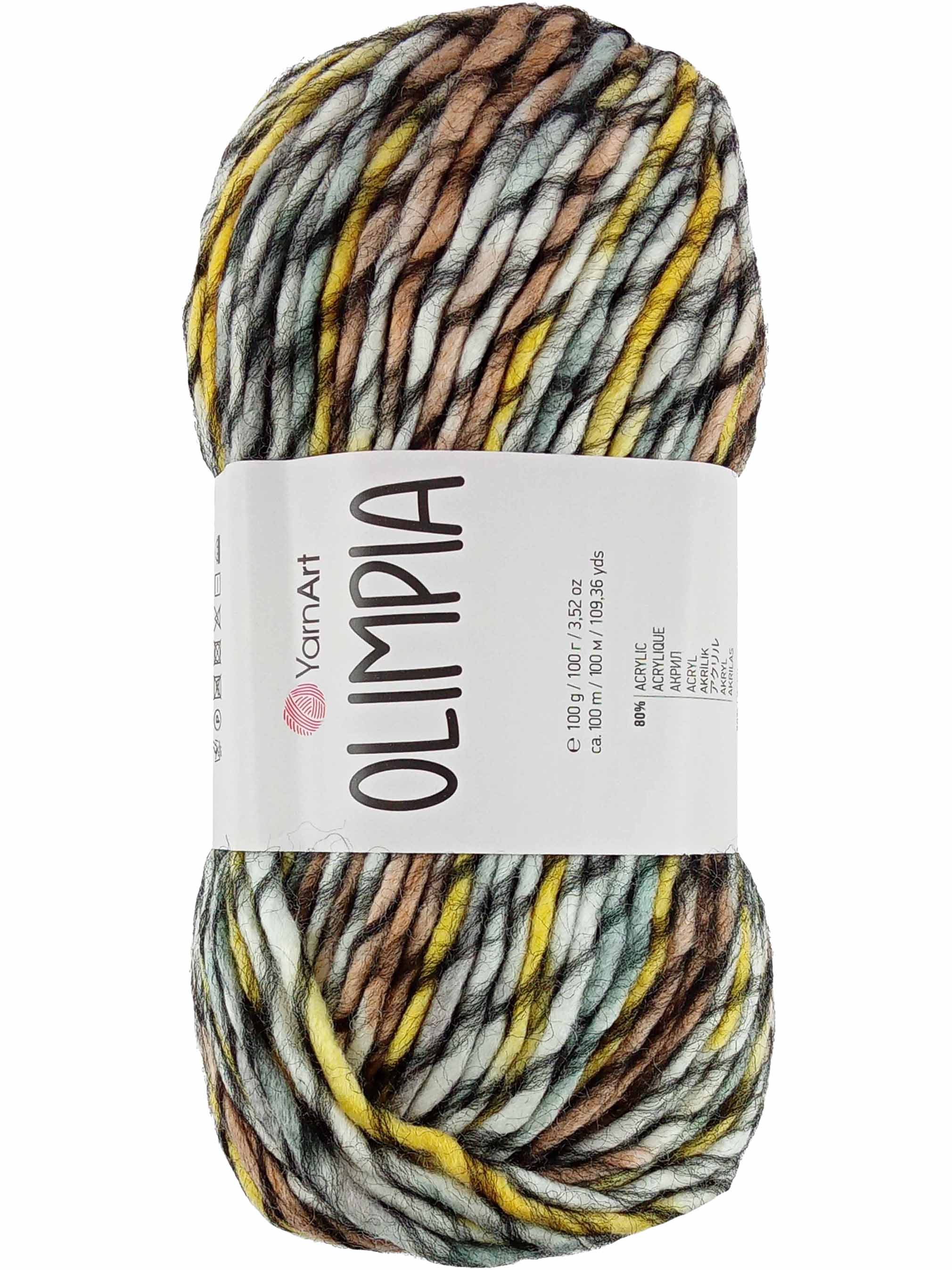 Włóczka YarnArt Olimpia - to grubsza wersja włóczki YarnArt Passion. Jesienno zimowa włóczka, mieszanka wełny i akrylu, melanżowa włóczka o ciekawych kontrastowych, nasyconych kolorach przepleciona czarną nitką. Z włóczki tej można zrobić czapki, szaliki, rękawiczki, kominy, swetry, kamizelki, poncza, kardigany czy koce, poduchy i wiele innych pięknych rzeczy.