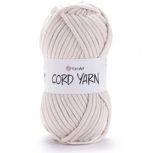 YarnArt cord yarn - to przędza typu Marshmallow czyli dzianinowa wstęga w formie rękawa wypełniona miękkim pluszem. Lekką, miękką i grubą przędzę tego typu można wykorzystać na torebki, plecaki, koszyki, dywaniki albo na legowisko dla czworonoga.