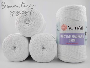 Sznurek bawełniany YarnArt twisted macrame 3mm - pojedynczo skręcany bawełniano-poliestrowy sznurek. Sznurki skręcane nie posiadają rdzenia dzięki czemu są delikatniejsze i miększe, a prace z niego wykonane są lżejsze. Polecany przy wyrobach typu torebki, makramy. Sznurek można rozczesywać.