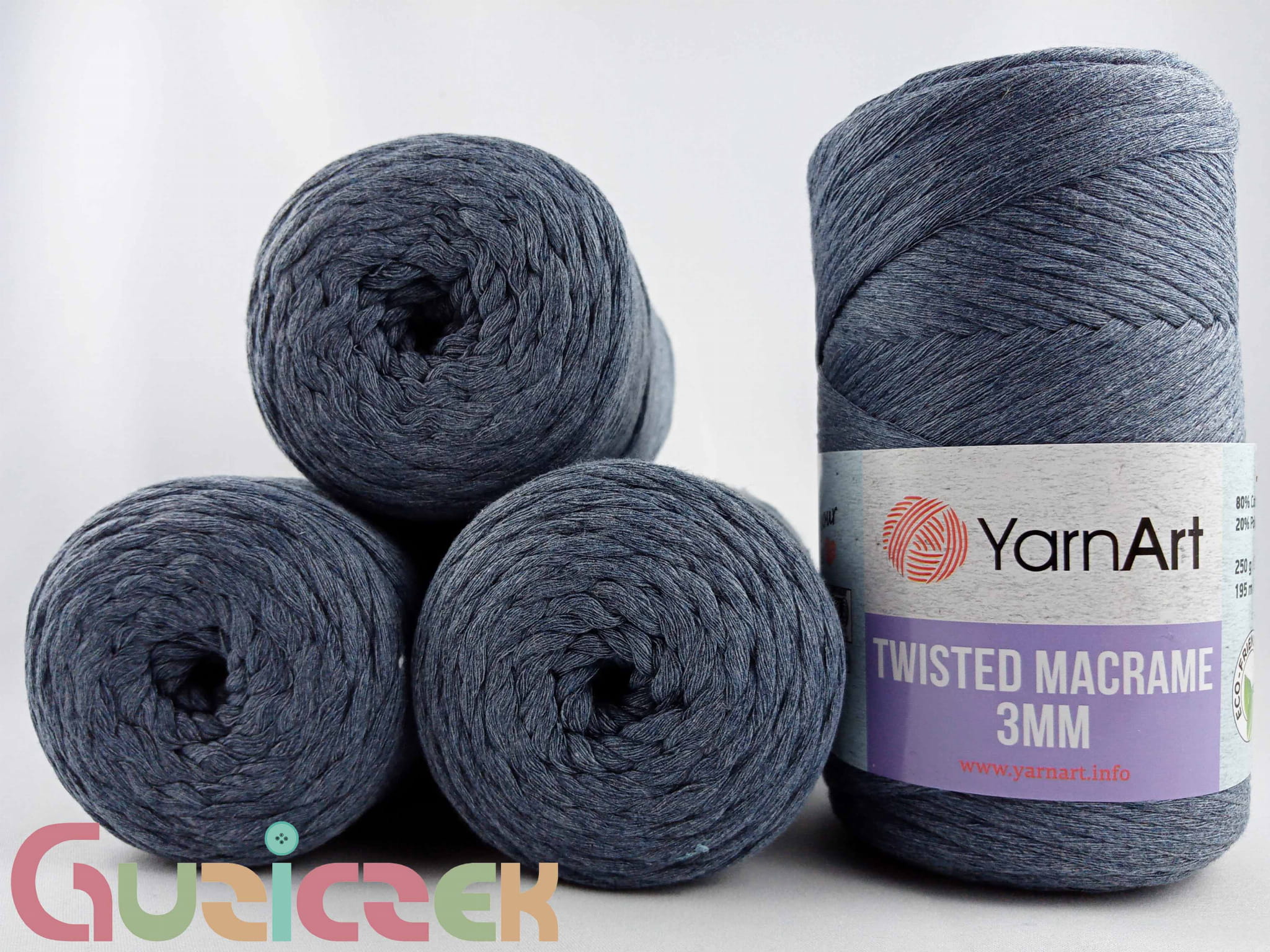 Sznurek YarnArt twisted macrame 3mm - pojedynczo skręcany bawełniano-poliestrowy sznurek. Sznurki skręcane nie posiadają rdzenia dzięki czemu są delikatniejsze i miększe, a prace z niego wykonane są lżejsze. Polecany przy wyrobach typu torebki, makramy. Sznurek można rozczesywać.