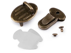 Zapięcie do torby stare złoto - wsuwane, montowane na klapę oraz bok.