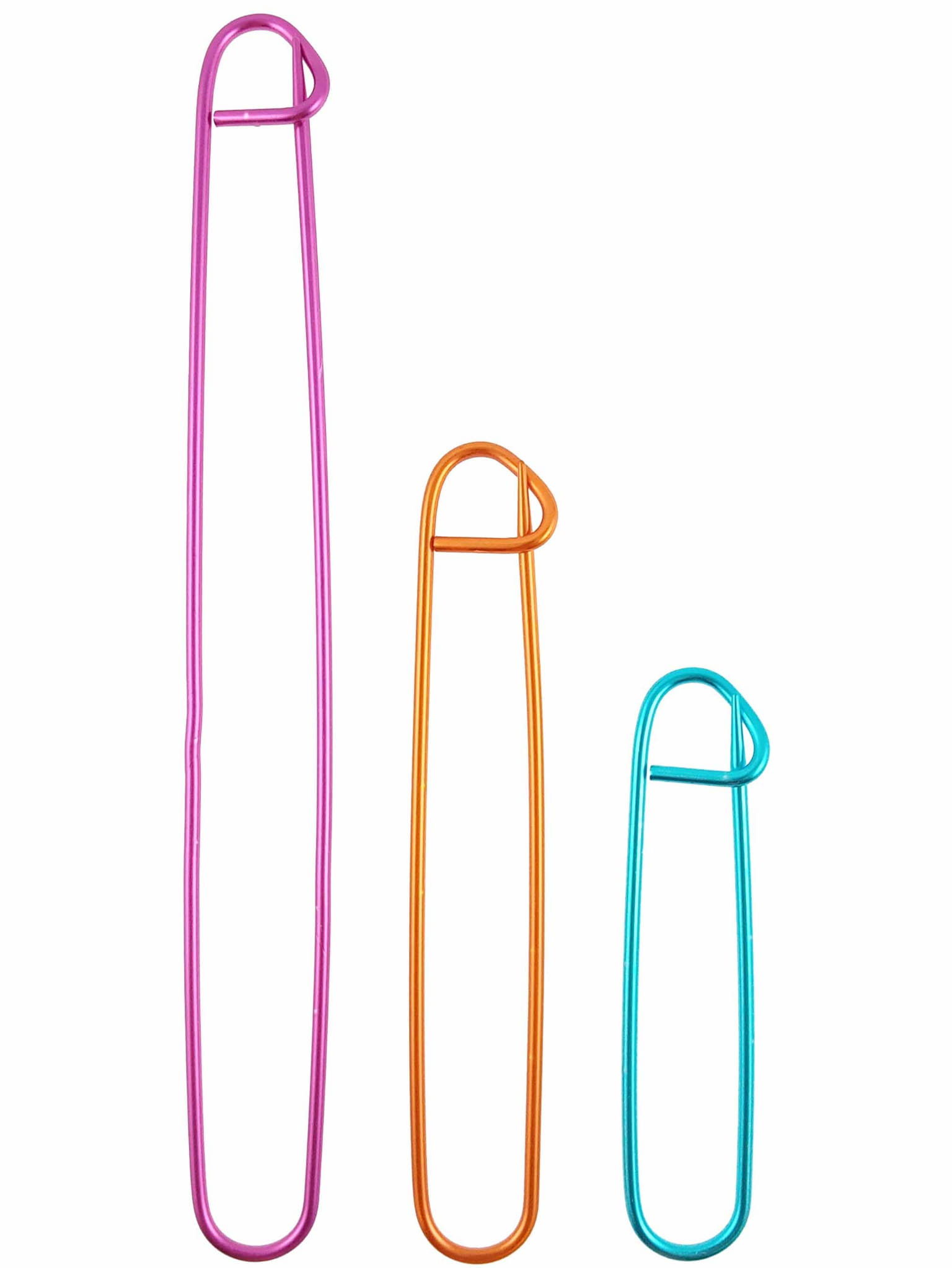 Agrafki aluminiowe do przytrzymywania robótek - zestaw trzech aluminiowych agrafek o długości 8 cm; 11,5 cm; 17 cm.