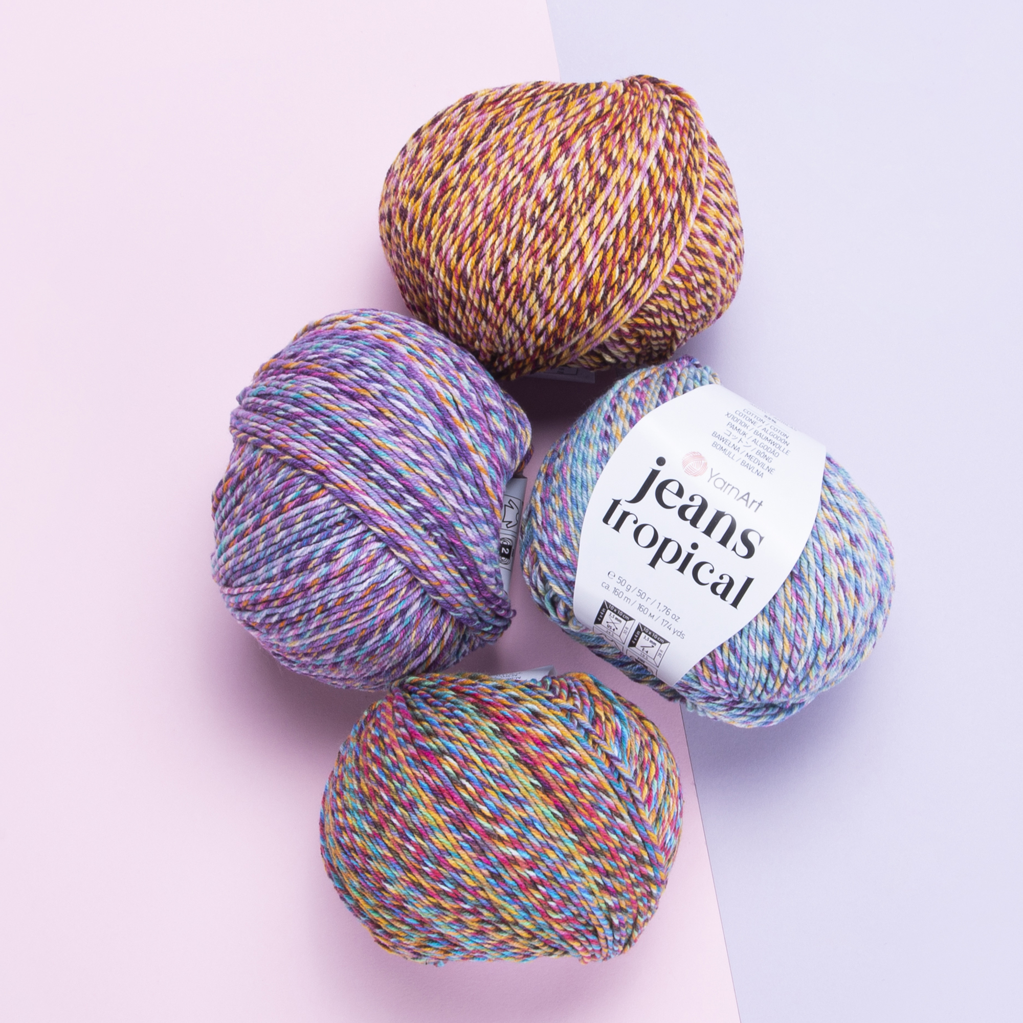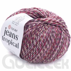 Włóczka YarnArt Jeans Tropical - melanżowa wersja znanej i lubianej włóczki YarnArt Jeans. Miękka i przyjemna w dotyku, nie rozciąga się. Jest bardzo dobrze skręcona, dzięki czemu jest wygodna przy przerabianiu. Idealnie nadaje się na wyroby dla dzieci na kocyki, poduszki, jesienno-wiosenne czapki, skarpetki oraz maskotki.